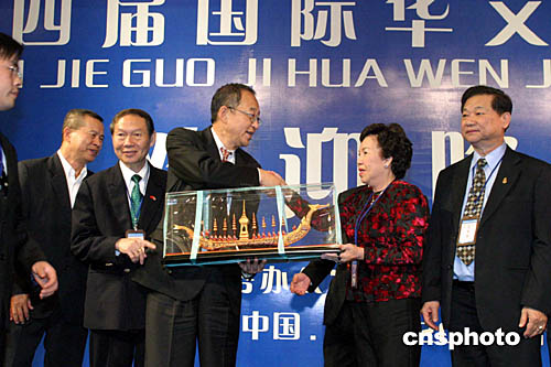 開幕式由國(guó)僑辦副主任劉澤彭主持。泰國(guó)華文民校協(xié)會(huì)永遠(yuǎn)名譽(yù)會(huì)長(zhǎng)梁冰、美國(guó)中文學(xué)校聯(lián)合總會(huì)創(chuàng)會(huì)會(huì)長(zhǎng)許笑濃、美國(guó)全美中文學(xué)校協(xié)會(huì)會(huì)長(zhǎng)何振宇、緬甸曼德勒福慶學(xué)校副校長(zhǎng)李祖清等作了大會(huì)發(fā)言。