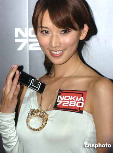 臺灣名模林志玲14日晚在香港會展中心為諾基亞7280流動電話推出造勢。作者:趙振清