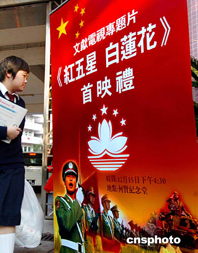 反映中國(guó)人民解放軍駐澳門部隊(duì)風(fēng)采的電視片《紅五星·白蓮花》即將在全國(guó)播放。中新社記者:宋吉河