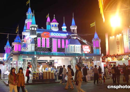 圖為經(jīng)營小型家用電器的威馬企業(yè)參展攤位,外型如城堡入夜時(shí)分光芒四射。作者:洪少葵