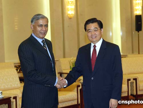 中新社北京十二月十六日電(記者齊彬)中國國家主席胡錦濤今天下午在會見巴基斯坦總理阿齊茲時表示,中方愿與巴方進一步強化反恐合作,共同打擊地區(qū)“三股勢力”。