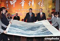 澳門特區(qū)行政長官何厚鏵在開幕儀式上接受贈畫。作者:宗金柱