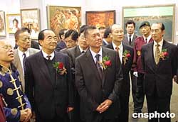 何厚鏵等參觀畫作。作者:宗金柱