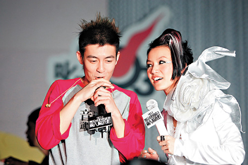 有“緋聞王”之稱的Edison,看來不太介懷緋聞事,邀一班緋聞女友上臺(tái)撐場,毫不避忌;更與最新緋聞女友Stephy在臺(tái)上不時(shí)耳語,看來甚親密。事后Edison表示,所謂耳語,是因?yàn)镾tephy受驚,于是他便安慰對方。