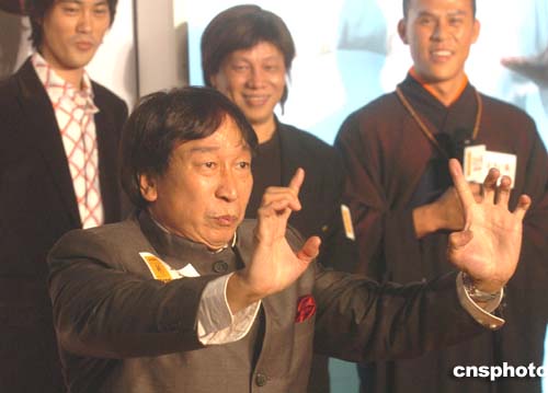 由周星馳自編﹑自導(dǎo)﹑自演耗時(shí)兩年多拍攝的影片《功夫》16日晚在香港時(shí)代廣場(chǎng)舉行首映開幕禮﹐在片中擔(dān)任主要角色的趙志凌現(xiàn)場(chǎng)表演“洪拳”,該片將在12月23日在全球上映。作者:趙振清
