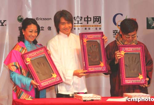 十二月十八日晚,從香港巨星周星馳執(zhí)導(dǎo)兼主演的賀歲影片《功夫》在上海首映,圖為周星馳與《功夫》演藝人員在上海留手印祝賀首映成功。作者:潘索菲