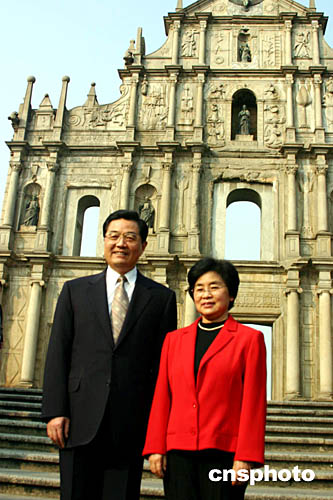 今天下午,甫抵澳門的胡錦濤出席西灣大橋落成典禮后,隨即前往參觀澳門著名景點大三巴、澳門博物館、大炮臺。