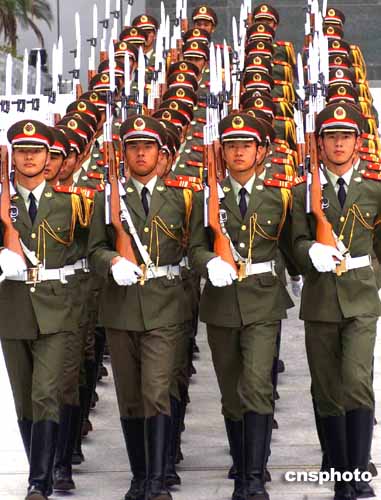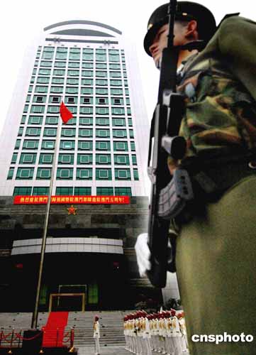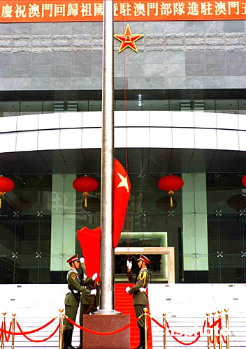 解放軍駐澳門(mén)部隊(duì)20日上午莊嚴(yán)舉行升旗儀式,慶祝澳門(mén)回歸祖國(guó)五周年。作者:宋吉河