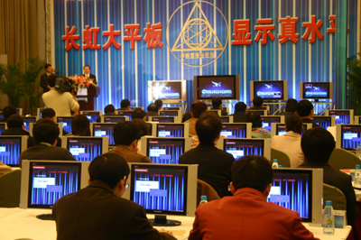 在此次發(fā)布會(huì)上,國家廣播電視產(chǎn)品監(jiān)督檢驗(yàn)檢測中心發(fā)布《長虹平板電視綜合檢測報(bào)告》指出,長虹平板電視在清晰度、亮度、色度、對(duì)比度等綜合性能指標(biāo)位列行業(yè)前茅。這表明,長虹“平板顯像金三角”所擁有的專有技術(shù)代表著平板顯像技術(shù)的發(fā)展趨勢(shì)。