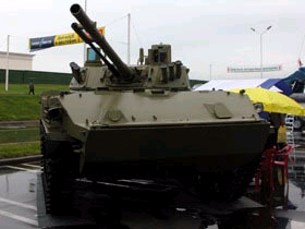 俄羅斯國防部長向俄總統(tǒng)普京匯報時指出:“我們完成了BMD-4型傘兵戰(zhàn)車的研制工作,2003-2004年我們投入了大量的資金,2005年我們將采購這種新式裝備!