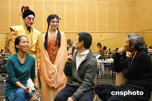 集合京劇、昆曲、臺(tái)灣原住民樂(lè)舞的跨年大型歌舞戲曲《暴風(fēng)雨》,將于十二月三十日至二零零五年在臺(tái)北連演四天。該劇取材自莎士比亞戲劇,由香港著名導(dǎo)演徐克(左一)、臺(tái)灣“反派大師”吳興國(guó)(左二)、獲奧斯卡金像獎(jiǎng)的臺(tái)灣造型師葉錦添聯(lián)袂奉獻(xiàn)。圖為二十一日該劇媒體見(jiàn)面會(huì)的情景。