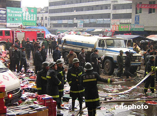 二十一日清晨七點(diǎn)半左右,湖南常德市橋南市場(chǎng)橋南賓館旁一商鋪突發(fā)大火,火勢(shì)借助風(fēng)勢(shì)迅速向市場(chǎng)西北蔓延,過(guò)火面積近二萬(wàn)平方米。據(jù)悉,橋南市場(chǎng)是個(gè)多層封閉式的集貿(mào)市場(chǎng),建于一九九二年,有“湘西北第一市場(chǎng)”之稱。