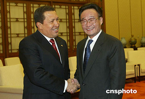 圖:吳邦國會見委內(nèi)瑞拉總統(tǒng)查韋斯