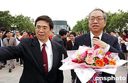 十二月二十三日,由著名華裔數(shù)學(xué)大師、菲爾茨獎(jiǎng)獲得者丘成桐率領(lǐng)的華裔數(shù)學(xué)家代表團(tuán)一行先后訪問(wèn)廣州大學(xué)城和肇慶學(xué)院。圖為丘成桐教授在肇慶學(xué)院受到師生熱烈歡迎。作者:陳文