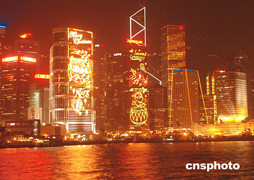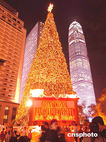 位于中環(huán)皇后像廣場(chǎng)的巨大圣誕樹與國(guó)際金融中心二期大廈遙相呼應(yīng)﹐看似媲美。