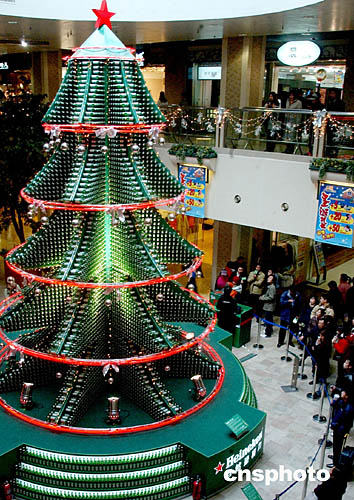 啤酒瓶搭建的“巨型圣誕樹”