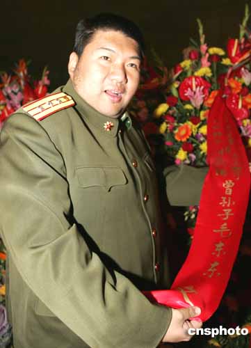 毛澤東的孫子毛新宇代表父母、妻子和2003年12月26日出生的兒子毛東東(毛澤東的曾孫)到北京毛主席紀念堂敬獻花籃。作者:任晨鳴