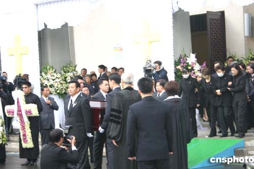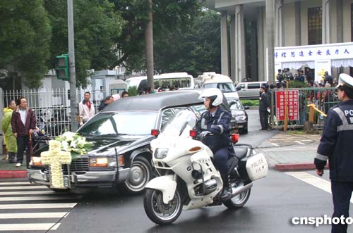 裝有蔣方良遺體的棺木,在其家屬護送下正抬出介壽堂,送上靈車,準備到基隆火化。作者:黃少華