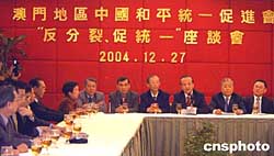 二十七日,澳門地區(qū)中國(guó)和平統(tǒng)一促進(jìn)會(huì)舉行了“反分裂、促統(tǒng)一”座談會(huì),與會(huì)人士對(duì)巳正式進(jìn)入立法程序的《反分裂國(guó)家法》紛紛表示贊同和支持。作者:梁永強(qiáng)
