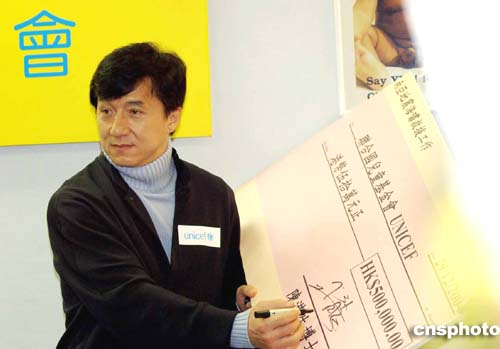 香港多個(gè)民間救援機(jī)構(gòu)陸續(xù)發(fā)起籌款活動,為南亞海嘯災(zāi)難捐款,12月29日,國際影星成龍?jiān)谙愀壅J(rèn)捐五十萬元予聯(lián)合國兒童基金會。作者:洪少葵