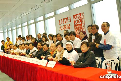 由香港演藝界發(fā)起于1月7日舉行的《愛心無國界》籌款表演,定于香港政府大球場舉行,1月1日,演藝界及多個團體聯(lián)合在香港國際金融中心舉行發(fā)布會,一眾出席嘉賓手拉手以示賑災(zāi)決心。作者:洪少葵