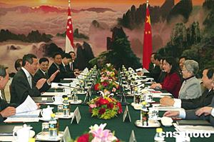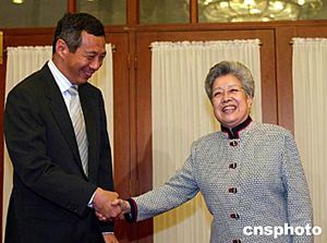 中國國務(wù)院副總理吳儀與新加坡副總理李顯龍舉行會(huì)談。中新社記者:滿會(huì)喬