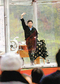 5月7日下午3時(shí)35分,絕食49天的陳建民在醫(yī)務(wù)人員攙扶下走出玻璃房進(jìn)入升降機(jī)。他的體重由49天前的69公斤降到了現(xiàn)在的49公斤。