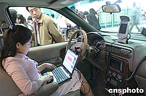 五月中旬,在北京科技周展覽會(huì)上,一種可在移動(dòng)的汽車(chē)上完成全套辦公業(yè)務(wù)的“車(chē)載辦公室”向觀眾亮相。“車(chē)載辦公室”有無(wú)線(xiàn)網(wǎng)絡(luò)、衛(wèi)星導(dǎo)航、傳真打印等各種配置。中新社記者:史利
