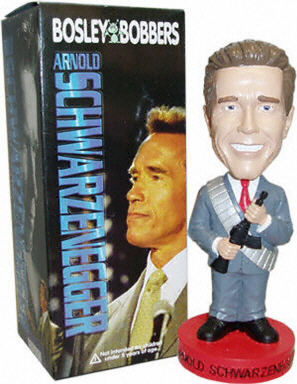 現任美國加州州長施瓦辛格的電影公司日前起訴一家玩具制造公司,在未經授權的情況下使用施瓦辛格的畫像和圖片,侵犯了他的肖像權。圖為施瓦辛格“玩偶”。