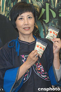 著名藝人汪明荃5月19日在香港出席《樂施會中國發(fā)展基金2004》記者會,「樂施大使」汪明荃身穿布依族傳統(tǒng)繡花服飾,手持親筆簽名的「樂施米」,呼吁各界支持「樂施米」籌款活動。作者:鄧慶樂
