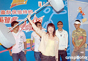歌星鄭融5月19日在香港出席無(wú)線奧運(yùn)節(jié)目《進(jìn)軍雅典---燃點(diǎn)圣火雷霆夜》記者會(huì),鄭融將聯(lián)同其它歌星演出「一個(gè)金牌的誕生」舞臺(tái)劇。作者:鄧慶樂(lè)