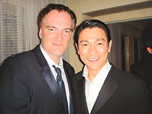 《十面埋伏》昨晚在戛納展映,氣氛異;鸨ネ〉热艘驳竭_(dá)捧場。在展映后的酒后中,昆汀拉著華仔敘談,稱華仔的114部電影他全部看過,是華仔的一個影迷。