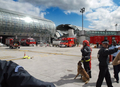 法國(guó)官方已在現(xiàn)場(chǎng)啟動(dòng)了“紅色方案”,即就地展開全方位醫(yī)療救助,并全面實(shí)行救援工作,動(dòng)用一切必要條件,確保搶救工作順利進(jìn)行。圖為法國(guó)警方搜索犬待命拯救坍塌失蹤人員。