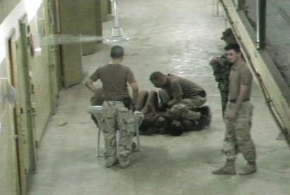在阿布格萊布監(jiān)獄的虐囚事件中,軍情人員涉嫌鼓勵(lì)美國(guó)士兵虐待囚犯一直是倍受關(guān)注的中心問(wèn)題。按照規(guī)定,軍事警察的責(zé)任是看守囚犯,無(wú)權(quán)參與審訊過(guò)程。但負(fù)責(zé)調(diào)查阿布格萊布監(jiān)獄虐囚事件的塔古巴上將卻在一份報(bào)告中引用了一名獄警的證詞,稱軍情人員經(jīng)常游說(shuō)看守人員虐待俘虜,以讓他們?cè)趯徲嵵兴煽凇?/p>