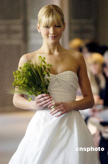 美國紐約最近舉行2004/05婚紗時裝周,各種風格的婚紗紛紛登臺亮相,或端莊典雅,或熱情奔放,使到場觀眾大開眼界--原來婚紗也可以設(shè)計得如此多姿多彩。Ic/cnsphoto 攝