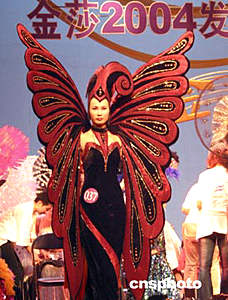 南京金莎二零零四發(fā)型化妝大賽上的水果妝金莎二零零四發(fā)型化妝大賽五月二十七日在南京紫金大戲院舉行,來自江蘇美容美發(fā)業(yè)的二百多名選手參加了剪吹、新娘化妝、形象設(shè)計(jì)等環(huán)節(jié)的比賽。作者:孫愛華