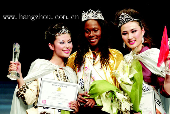 中新網(wǎng)5月29日電 據(jù)都市快報(bào)報(bào)道,昨天晚上,杭州黃龍?bào)w育館,經(jīng)過兩個(gè)晚上的緊張角逐,一身美麗的巧克力肌膚的特里尼達(dá)和多巴哥模特小姐阿奇拉·郭美茲勇奪花魁,在59個(gè)國家和地區(qū)的佳麗中脫穎而出,成為第16屆世界模特小姐大賽世界總冠軍。