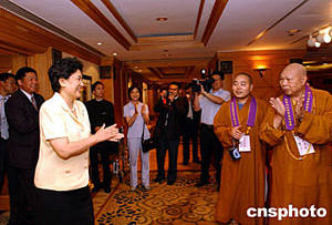 全國(guó)政協(xié)副主席、中央統(tǒng)戰(zhàn)部部長(zhǎng)劉延?xùn)|,5月28日在下榻酒店會(huì)見一誠(chéng)法師等佛指舍利赴港護(hù)送團(tuán)成員。作者:洪少葵