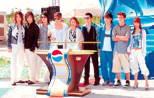 在直升機(jī)場上,先安排九位巨星為“百事”小型直升機(jī)進(jìn)行揭幕儀式,又與直升機(jī)合照!俺浅恰弊R(shí)搶位,第一時(shí)間沖入直升機(jī)坐上機(jī)師位,其它巨星就只是在飛機(jī)旁合照。