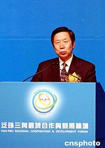 “泛珠三角區(qū)域合作與發(fā)展論壇”6月1日在香港揭幕,圖為國務院港澳辦副主任陳佐洱在討論上演講。作者:洪少葵