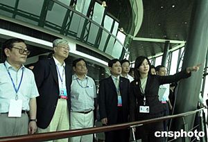 “泛珠江三角洲區(qū)域合作與發(fā)展論壇”二日移師澳門(mén),圖為當(dāng)天上午代表團(tuán)參觀著名的澳門(mén)旅游塔。作者:梁永強(qiáng)
