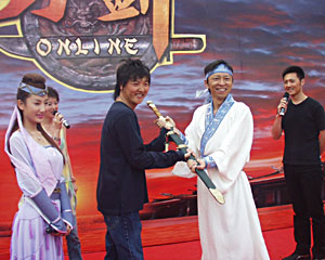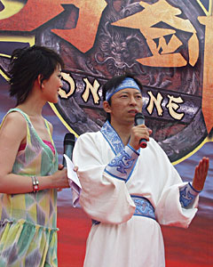 在象征著中國(guó)龍的居庸關(guān)長(zhǎng)城腳下,上千位手持搜狐“群英帖”的嘉賓匯集一堂,儼然一場(chǎng)名副其實(shí)的江湖群英會(huì)。《刀劍Online》發(fā)布會(huì)以氣勢(shì)恢弘的舞龍開場(chǎng),代表著《刀劍Online》將在群雄逐鹿的網(wǎng)游市場(chǎng),以原汁原味的中國(guó)功夫開篇中國(guó)人自己的網(wǎng)游傳奇。“搜狐掌門人”張朝陽(yáng)一身古代俠士裝扮出場(chǎng),一番刀劍揮舞,顯示了不凡的武功造詣。而作為此款網(wǎng)游主題音樂(lè)代言人的內(nèi)地著名歌手孫楠?jiǎng)t以一曲曲風(fēng)高揚(yáng),極具武俠風(fēng)格的《刀劍》將發(fā)布會(huì)氣氛推向高潮。