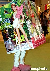 “第三十五屆夏日婚紗及結(jié)婚用品展”六月四日在香港會展中心開幕,是次展覽云集兩百多間公司、三百多個攤位。圖為商家卡通人在展會上促銷。作者:錢興強