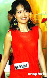 香港歌星容祖兒,六月五日身穿火辣紅衫出席香港一家教館舉行的簽約儀式,出任瘦身教館代言人。 作者:錢興強(qiáng)