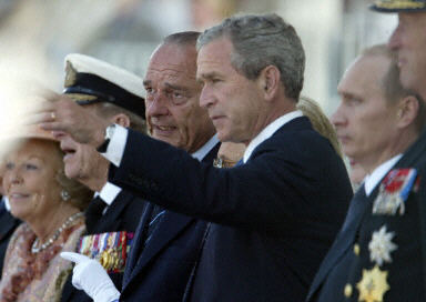 諾曼底登陸60周年紀念儀式6日下午在法國小城阿羅芒什隆重舉行。包括德國總理施羅德和俄羅斯總統普京在內的20多位國家元首參加紀念儀式。德國和俄羅斯的領導人今年是首次參加諾曼底登陸紀念。