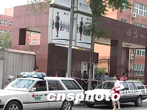上午九時(shí),一輛警車載著一名被堵在路上的考生朝北京四中的方向呼嘯而至。在高考期間遇到堵車可以撥打一一0、一二0等號(hào)碼讓不少路途遙遠(yuǎn)的考生吃下了定心丸。