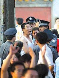 昨天16時(shí)50分,離演出開始還有10分鐘,地壇方澤壇內(nèi)就涌入了數(shù)百名搖滾樂迷。17時(shí),主辦方突然抱歉地向觀眾解釋,為了不影響高考,演出延遲30分鐘舉行。20多分鐘后,在焦急地等待中,這場(chǎng)公益“搖滾大餐”終于開場(chǎng)。包著紫白相間頭巾、戴著墨鏡的瘦人樂隊(duì)主唱戴秦一亮相,就引來(lái)臺(tái)下觀眾一陣陣夾雜著尖叫和口哨聲的熱烈吶喊。戴秦一口氣唱了兩首勁歌,精彩紛呈的表演和震耳欲聾的音樂讓臺(tái)下的歌迷叫得聲嘶力竭。