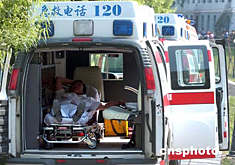 六月九日,十輛急救車在北京大安山煤礦出事礦井附近待命,已等候一天一夜的醫(yī)務人員在車上小憩。六月六日,位于北京郊區(qū)的大安山煤礦發(fā)生坍塌事故,十名礦工被困井下。原先估計九日上午即可打通營救巷道,找到被困礦工,但井下地質狀況十分復雜,截至九日下午六時,巷道尚未打通,估計還有三米的距離。中新社記者:張煒