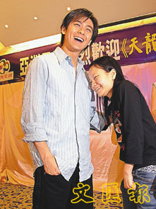 在招待會上,他又與FANS重演劇中與女角劉亦菲含情脈脈一幕,女FANS面對偶像已不能自持,還要跟他對望,最終小志把她擁在懷中,令該FANS喜不自禁。