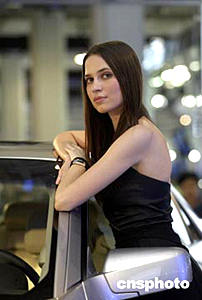 六月中旬在北京舉行的2004年北京國際汽車展上,中外廠家在車型、布展、車模等各個方面爭相比靚,以在年內(nèi)日漸低迷的中國車市上奪得市場先機(jī)。中新社記者:盛佳鵬